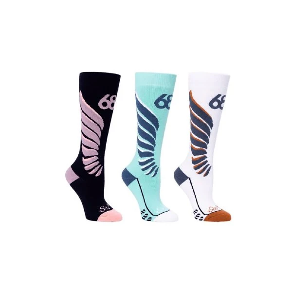 686 Womens Libert a Sock 3 Pack 85 Acrylic, 10 Nylon, 5 Spandex 3-Pack Midweight Cushioning Elastic Arch Support Reinforced Heel Toe Quick Dry After Ride
