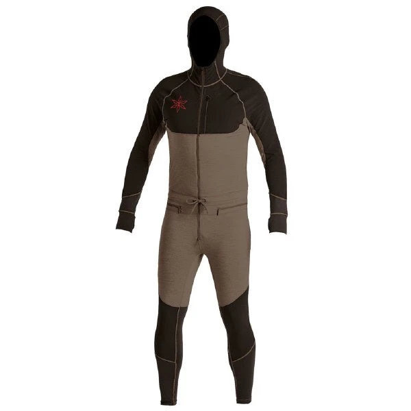 Welcome to the Future. Designed for alpine touring, the Ninja Suit Pro protects you from falling snow and ridgetop gusts so you can focus on quick transitions and logging more laps. At hood and shoulders, 4-way stretch Schoeller Nanosphere softshell provides ultimate water repellency and excellent breathability. At main body, our 2x Merino provides thermally dynamic performance and odor resistance. At wrists and ankles, a durable low profile compression fabric rounds out the superior function of this next generation Ninja Suit. 4-way stretch woven wool blend water-resistant Schoeller Nanosphere fabric with at hood, shoulders and knees YKK zippers throughout Durable nylon-blend compression fabric at cuffs and lower leg 4-way stretch merino fabric at main body 350 waist zip – because the powder is better after a big dump Full length 2-way zipper is less bulky and provides easy entry and bathroom breaks 7 panel form-fitting hood with chin protector Thumb loops at cuffs Ninja Star silkscreen at chest Zippered chest pocket