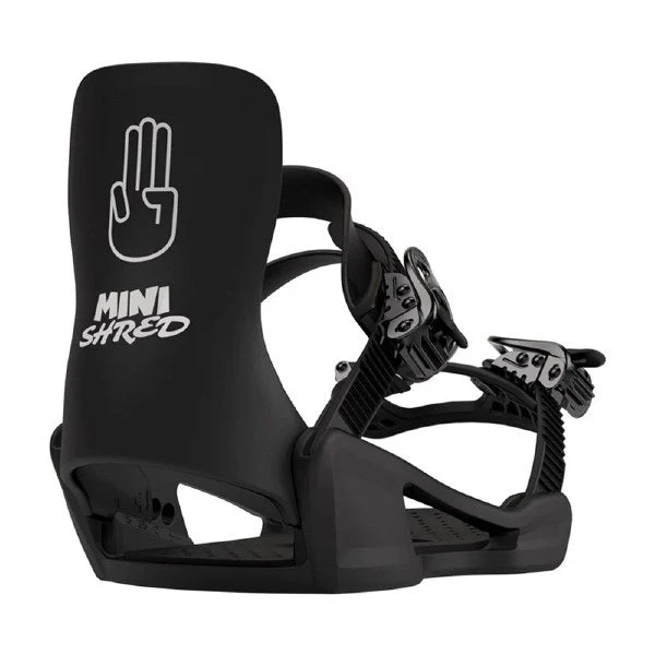 BATALEON 2023 BOYS MINISHRED SNOWBOARD BINDING There’s a time and a place for decade old hand-me-downs, but nothing beats great gear like the Bataleon Minishred Snowboard Bindings. Light, strong, and designed specifically for smaller feet, the Minishred will help your grom rip it to their full potential. Baseplate Solid Base Injected in a proprietary blend of nylon and glass fibre to yield optimum flex, response, cushioning and strength with minimal heft. The solid base is a proven platform that flexes well with your board. It features a wrap-around rubber smart rubber dampening system and integrated EVA footpadding to reduce chatter and vibration. EVA Footbed Highback Flatback Highback Eiki Helgason designed the Flatback Highbacks for tip-to-tail mobility and heel-to-toe response. Their minimal curvature makes them super flexible for jibs and grabs, but their tall height supports high speed carves and hefty landings. They are anatomically shaped and have adjustable forward lean to dial in your desired responsiveness Straps Miller Straps Miller Straps are flexible, pre-curved, and form fitting to hug the contours of any boot. The perforated mesh makes them more flexible and reduces pinch areas, while the outer strap disperses pressure evenly across the foot. Ideal for freestyle riding and for riders who value flex and mobility. Ergonomically pre curved ladders provide fast entry and eliminate pressure points.