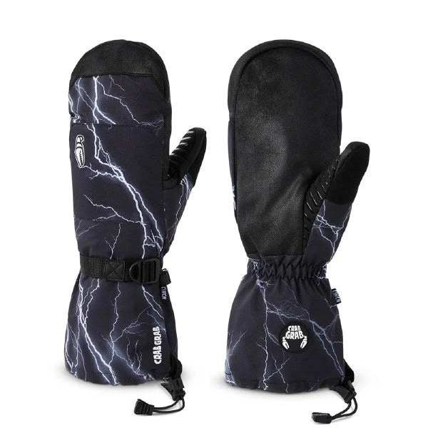 CRAB GRAB MENS CINCH MITT Our all-season, all-around team favorite mitten has been redesigned from the ground up. Expertly paneled to fit like a dream, these warm, dry, grippy gauntlet mitts are gods amongst mere mortal mittens. WARM Sherpa Fleece Micro Fruzz liners PrimaLoft insulation DRY 15K Dry-Claw Hipora membrane Durable Water Repellent coated 4-way stretch shell exterior GRIPPY Crunch Grip Thumbs PrimaLoft Grip-Control palm insulation TOUGH AX Grain Tech palms The animal-alternative super synthetic Wrapping Palm construction Less seams to increase durability. Duraflex hardware 100 VEGAN