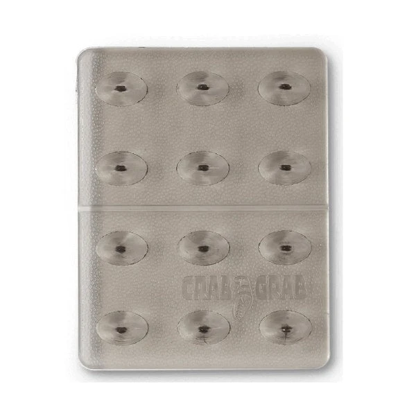 CRAB GRAB MINI SHARK TEETH STOMP PAD This is the mini version of our best selling spiky traction. Same size teeth (just fewer of them) for those who want maximum grip for minimum dough. SMALL PAD. BIG BITE. 1 per pack 12 Spikes Dimensions: 2.9 x 3.7 TECHNOLOGIES: SHARK TOOTH SPIKES – Ovular spikes modeled after nature s best bite. CRUBBER – Our flexible rubbery replacement to the stomp pads of yesteryear. EASY CUT GROOVES – Flex with your board to let it bend naturally, and easy to cut and spread out your spikes.