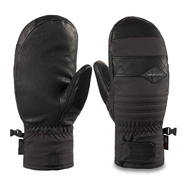 DAKINE MENS FILLMORE MITT GLOVES Shunning bulk in favor of dexterity, the Fillmore showcases intentional functionality coupled with low-profile progressive styling to make it a go-to midweight mitt. The water repellent leather palm, knuckle, and finger panels add premium durability to a nylon and poly shell. The DK Dry waterproof insert blocks moisture from outside while letting it escape from inside. High-loft synthetic insulation holds heat, and attached nose wipe panels let you keep the mitts on while you’re on the mountain. 45 Recycled Polyester, 28 Polyester, 23 Goat Leather, 4 Polyurethane