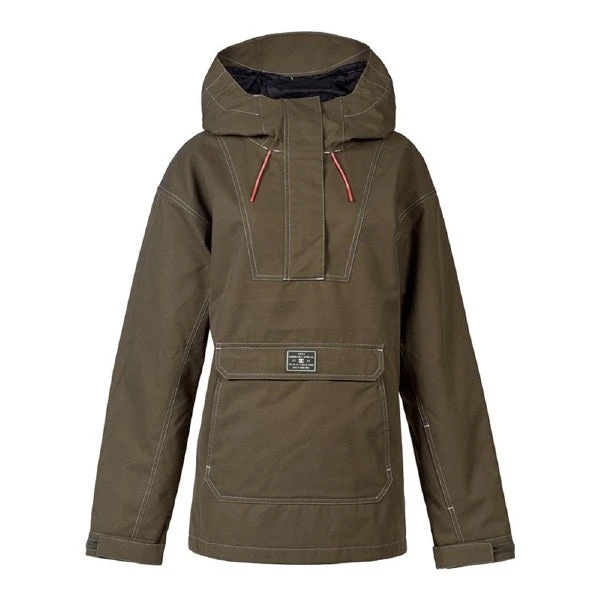 2022 DC WOMENS SAVVY ANORAK JACKET Introducing an instant classic from the folks at DC. The DC Savvy Anorak Jacket comes in hot with all the features you need to manage temperature and stay comfortable through pow days and slush days alike. Mesh-lined armpit venting keeps it breezy when things get toasty, and the contemporary pull-over design makes it quick and easy to add or subtract layers. Face Fabric Solid and Black 100 polyester dobby Zebra 100 polyester oxford Membrane Weather Defense 10k 10,000mm Waterproofing 5,000g Breathability Insulation Insulation 40g Body and Sleeves Lining Material Taffeta Lining Fit Regular Fit Pockets Zippered Hand Warmer Pockets Vents Mesh Lined Armpit Venting Additional Features Critically Taped Seams Fixed Waist Gaiter 2-way Hood Cinch System Internal Media Cord Routing Helmet Compatible