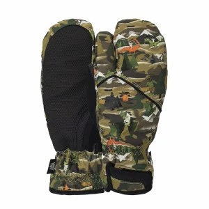 FOR LITTLE RIPPERS WHO PREFER HOT LAPS TO HOT-COCOA BREAKS. Shell: Recycled Poly PU laminate w DWR Palm: Waterproof PU Insert: SoDry Waterproof Insert Lining: Premium anti-pill polyester Microfleece Insulation: 4oz Fiber Fill Closure: Hook & Loop FEATURES Waterproof SoDry insert Buff Thumb material to wipe your nose and or goggle Hybrid trigger style for maximum warmth and dexterity Wrist Leash included