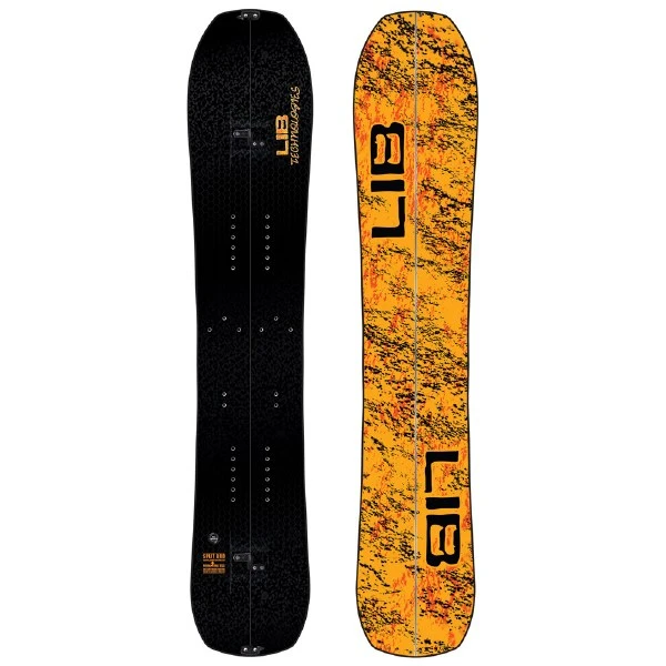 LIB TECH SPLIT BRD All Mountain Split Directional The Ultimate Fast climbing, POW Floating Freestyle Minded Split Board POW And Backcountry All Year Easy To Use High Tension Karakoram Ultra Clips Our dreamy split board. Light weight all paulownia core and ultra-light tip and tails. Directional shape with big floaty early rise nose for effortless descents. Tapered C3 camber body for stable efficient climbing and stability in technical terrain and at speed. 3-D integrated clip inserts. Fast running eco sublimated safety orange TNT base. Rugged eco sublimated bio-beans top material. MAGNE-TRACTION EFFORTLESS EDGE HOLD SERRATED STEAK KNIFE TECHNOLOGYTURNS ICE INTO POWDER 7 strategically located edge serrations provide unreal edge hold and control in all conditions. SPLIT CONSTRUCTION SC LIGHTER ENVIRONMENTALLY NICER TOUGHER CORE: 5 ASPEN 95 PAULOWNIA GLASS: FIBER REINFORCED INSERT ARRAY. TRI-AX BI-AX TOP: ECO SUBLIMATED BIO BEANS TOP BASE: ECO SUBLIMATED TNT (FAST & LOW MAINTENANCE) BIRCH INTERNAL SIDEWALLS UHMW SINTERED SIDEWALLS UHMWTIP TAIL IMPACT DEFLECTION BANANA TECHNOLOGY BNA EFFORTLESS CONTROL THE ORIGINAL AWARD WINNING ROCKER CAMBER HYBRID CONTOURSENGINEERED FOR SNOWBOARDING FULL CONTACT AND CONTROL IN ALL CONDITIONS. AWESOMEEVERYWHERE CENTRAL ROCKER BUILDS INCARVE, EDGE HOLD & FLOAT CAMBERS BUILD IN POP, STABILITY AND CONTROL C3 CAMBER Aggressive All Terrain Contour AGGRESSION: Control Precision Power Camber Mild Rocker Camber Ejack, Jamie Lynn and Fredi K s favorite. Camber engineered for snowboarding. BOARD ART BY: Timeless.