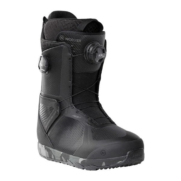 NIDECKER 2023 WOMENS KITA SNOWBOARD BOOTS The Nidecker Kita Snowboard Boots are an all new freeride boot with a super stiff flex for all mountain domination. Lots of features like a Gold Asym Heat moldable liner and 3D molded toe box and tongue provide a super customizable fit that lasts even after you break your boots in. Exo-Spine technology reinforces the flex to provide power transfer and support, while an Armor Tech outer shell lets you ride in any weather, even the rain. Flex Flex Rating 9 (1 Soft – 10 Stiff) Exo. Spine Exo-Spine Technology is an external backstay designed to be a reinforced link between the different parts of the boot and deliver an instantaneous transfer of force from heel to toe. It also offers extra stiffness for optimal support, as well as increased durability and resistance to shocks. Fit 3D Molded Toe Box These toebox designs eliminate extra layers and seams around the toe of the boot to create a durable and streamlined design with less bulk and a better FlowFit on your foot, and a better FlowFit in your bindings. 3D Molded Tongue The asymmetrical tongue is 3D molded and curved towards the medial side, following the naturally raised ridgeline of your forefoot to alleviate pressure points and give a more balanced feel of comfort and support. An anatomically correct and asymmetrical tongue performs better than a standard straight one. External Heel Lock Liner Gold-Level ASYM Thermo Heat Moldable Liner This sleekly redesigned Gold-Level ASYM Thermo Heat Moldable liner who features a new asymmetrical wrap closure function this year, in addition to the Ripper-lacing closure harness, that give you the possibility to tighten the upper and lower parts separately, in one movement, even when your boot is closed up. The pinnacle of comfort and support, the Gold-Level ASYM Thermo Heat Moldable is even more fully customizable to the form of your foot with the wrap closure system. This liner features high-density thermo foam, an extra padded comfort-cuff and tongue, a neoprene custom flex-zone toebox, internal multi-layer latex J-bars and external J-bars plus, heel and tibia Eva reinforcement panels for optimal support and superior heel-hold. Inner Shell harness w Liner Velcro Lacing System Asym 3F Part of the ASYM3F Technology : FIT – FEEL – FLEX are combined in an asymmetric shape and closure system that delivers optimum support and flex. Lined up along the asymmetrical molded tongue, the Boa Fit System lace guides are also asymmetrically positioned on the flatter areas of your forefoot for less point-loaded pressure and a more even closure, which increases medial arch support to reduce foot fatigue and cramping. This Nidecker innovation is codeveloped with and approved by Boa . Dual Zone Boa w External Heel-Lock H4 Coiler Technology Footbed 3D-Molded Triple-Density An advanced anatomical shape in comfort EVA with high-density EVA supporting the deep heel cup and arch, and special high-rebound EVA cushioning the heel. A Silicone topprint adds traction to the fleecelined footbed. Sole B.F.T. Vibram Approach Outsole 5-part B.F.T. Approach outsole utilizes special, high-traction Vibram rubber for maximized grip and durability, a high-density EVA midsole with reinforced shank for superior support, and OC-KUSH cushioning in the heel and forefoot for maximum comfort. OC Kush Shock-absorbing dynamic gel pads are inserted into the outsole around the heel and in the forefoot area. This special cushioning system allow to reduces fatigue and improves comfort. Space Blanket Shock-absorbing dynamic gel pads are inserted into the outsole around the heel and in the forefoot area. This special cushioning system allow to reduces fatigue and improves comfort. Additional Features Armor-Tech Waterproof Shell Made with incredibly durable, high-tech materials, this construction combines a waterproof bladder with a reinforced skeleton and our Exo-Spine external backstay designed to be a re-enforced connection between the different parts of the boot, deliver an instantaneous transfer of force from heel to toe, and provide extra stiffness for optimal support as well as a reassuring feeling of security. 8 Forward Lean (1:1 Lasting)