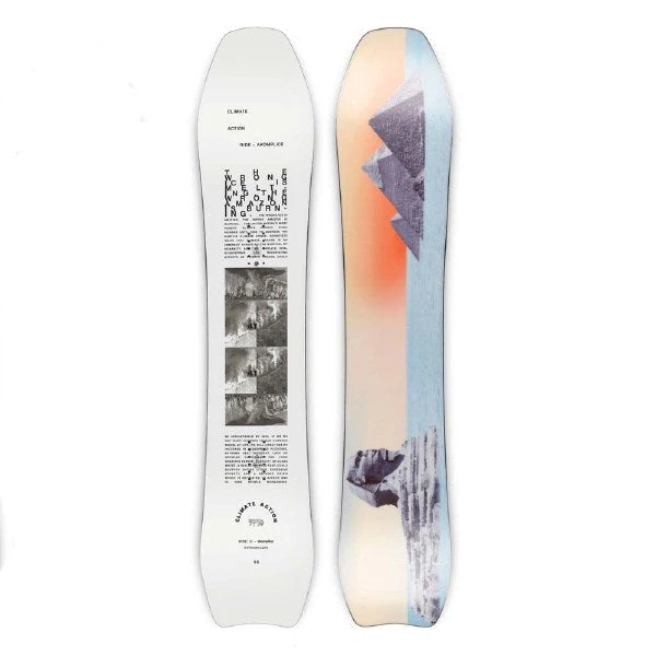 2022 RIDE X ACOMPLICE SNOWBOARD The PSYCHOCANDY has additional sizes this year to accommodate all riders. The shape is based on the innovative WARPIG, so the board is designed to be ridden 3 to 6 cms shorter than your standard board and approaches the mountain with the same ideology attitude that the WARPIG is known for. A Tapered Bi-Radial Sidecut maximizes grip and allows the PSYCHOCANDY to maintain speed in all conditions. Carbon Slimewalls enhance response and stability. The PSYCHOCANDY is a directional all-mountain board designed to ride like a WARPIG so you can tackle any and all terrain the mountain has to offer, be it park, pipe, pow or slush. Ride admires Akomplice and what they ve done to run a sustainable business, so they partnered with them to make this limited edition Psychocandy. Their graphics help draw attention to the simple fact that we can all be a little bit better stewards of the earth. Regardless of your political or social stance on climate change, we can all agree that we can use less resources and build better products while still living and experiencing the world. Ride built the board Akomplice did the graphics. We hope this helps draw attention to the work that Akomplice has been doing, and it gives us the chance to talk about what we are doing. This board will be a limited run of less than 500. It will be MAP protected through March of 2023.