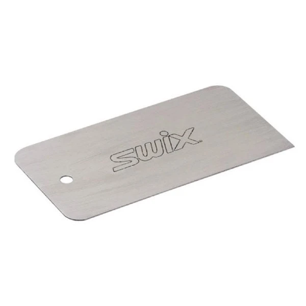 Steel scraper for scraping down the ski base before laying a new structure. Size: 125 mm x 62 mm x 1 mm.
