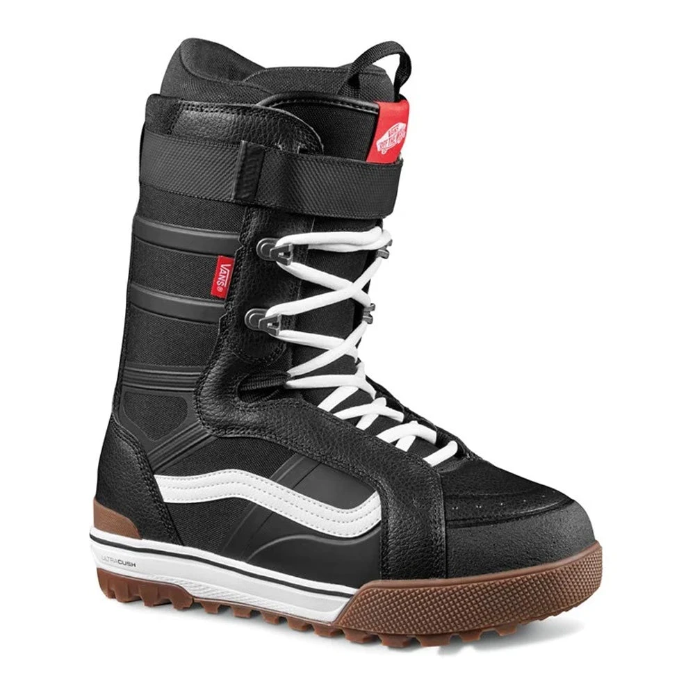 VANS 2023 MENS HI-STANDARD PRO SNOWBOARD BOOT The Vans Hi-Standard Pro Snowboard Boots set, as you would expect, a high standard for dependable performance in the snowboard world and have for years. No-nonsense lace up design with a Powercuff Strap, solid mid-level flex, and now with All-Trac cold weather tread compound for better grip, the Hi-Standard Pro marches forward with its head held high. Flex Flex Rating 5 – 6 (1 Soft – 10 Stiff) Instep Flex Zone The Instep Flex Zone functions to maintain natural ankle flexion in your boot, whether in or out of your bindings. Fit Pleasurecuff The supple elasticity of the PleasureCuff delivers a cushioned, comfortable fit that keeps your calves supported. Tongue Lock Down The Tongue Lock Down system adds an additional level of heel hold by connecting with your external laces and pulling the boot tongue toward your instep while tightening. Powercuff Strap Providing extra support at the top of the boot for increased stability and response. Its configuration gives riders customizable levels of engagement and the option of wrapping the strap around the internal liner or the exterior tongue. Liner V2 Ultracush with Smartwool Liner This inner features Smartwool merino wool fabric, which transfers and eliminates moisture. An UltraCush layer provides all-day comfort with minimal seams, and a neoprene forefoot gives a natural flex. A dual-density heat-moldable core is bolstered by the latest X-Cage–extra security and heel hold that always keeps you in contact with your board. V2 Boot Harness Customize your heel hold with the V2 harness as it works in tandem with the V2 liner to provide enhanced support and personalized fit. Lacing System Traditional Laces Reliable and customizable flex patterns make this traditional feature one that will always be on the market. Footbed V2 POPCUSH Footbed A dual density footbed that combines impact cushioning with energy transfer, the V2 POPCUSH fights fatigue with anatomical shaping, TPU arch support, a nylon moisture-wicking topsheet, and a coring design with airflow perforations. Sole V2 Waffle Pro The V2 Waffle Pro is a progressively inspired and capability-driven design built for both on and off snowboard performance. Uncompromising natural flex and a weight-reducing, impact-resisting UltraCush midsole provide incredible boardfeel, while a Vans-exclusive pattern and rubber compound give you the confidence you need to scramble the sidecountry with confidence. Additional Features Heat Retention 360 All Vans snowboard boots feature a newly improved thermal retention layer that provides a 360 wrap of the toe box and between the outsole and the liner. This essential layer keeps heat in and cold out, ensuring all-day warmth and comfort.