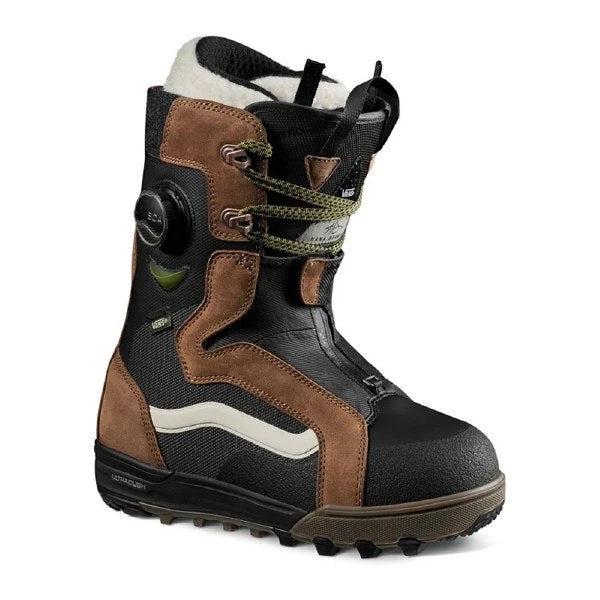 VANS 2023 WOMENS ONE & DONE SNOWBOARD BOOT Hana Beaman’s riding has progressed during her long career and her boots have morphed, as well. The Vans One & Done Snowboard Boots are a collab project that reflect the direction of her riding toward bigger lines and more remote locations. A burly but smoothly progressive flex, 3 4 height gaiters, and a Hybrid Boa lace coil system are just some of the high points, but there are many others. For the best in power, weather protection, and traction this is the boot to get. Flex Flex Rating 5 – 8 (1 Soft – 10 Stiff) Vans Flex Control System Removable high-rebound Hytrel tongue stiffeners allow riders to custom-tune their flex. Slide them both in for maximum support, use just one to provide either increased lateral or medial response or leave them out for a softer-flexing boot. As boots soften up over the course of a season, you can add the tongue stiffeners back in to extend the life of your boots. Instep Flex Zone The Instep Flex Zone functions to maintain natural ankle flexion in your boot, whether in or out of your bindings. Asymmetrical Flex Zone Fit Powercuff Strap Providing extra support at the top of the boot for increased stability and response. Its configuration gives riders customizable levels of engagement and the option of wrapping the strap around the internal liner or the exterior tongue. Liner V3 UltraCush Liner with FlashDry UltraCush interior cushioning layer with The North Face FlashDry for superior wicking performance Expanded Comfort Flex neoprene forefoot Updated X-Cage for superior heel hold Dual-density, heat-moldable core Closed-seam microsuede cuff and tongue V3 Harness This advanced support harness delivers our highest level of support to the ankle and instep, keeping the V3 liner and boot shell locked in and connected. Lacing System Vans Hybrid Boa The Hybrid system merges traditional lacing with the power of Boa closure at the instep and the adjustable flex control of the Custom Slide Guide for secure, targeted heel hold and true custom comfort. Footbed V3 PopCush Footbed Tri-density POPCUSH construction OrthoLite open-cell foam top layer TPU arch support heel clip provides stability while allowing torsional flex Advanced 3D-molded anatomical shape Anti-fatigue coring design Airflow perforations Nylex moisture-wicking top sheet Sole V3 Superenduro Waffle Outsole with All-Trac Rubber Inspired by the extended cross- country and off-road demands of moto enduro racing, the V3 SuperEnduro outsole is designed to offer maximum performance in and out of your bindings. Multi-directional tread design Surface-level texturing A TPU toe pick Check, check, and check. There s no keeping up with this all-terrain apex predator. Additional Features Breathable Valves These waterproof valves allow one-way moisture management by transporting moisture away from your foot, ensuring breathability and thermal regulation for dry, comfortable feet. Heat Retention 360 All Vans snowboard boots feature a newly improved thermal retention layer that provides a 360 wrap of the toe box and between the outsole and the liner. This essential layer keeps heat in and cold out, ensuring all-day warmth and comfort. Waterproof Zipper Shroud and D Ring