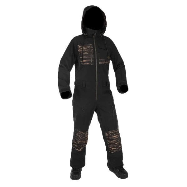 VOLCOM 2023 WOMENS ROMY SNOW SUIT Say Hello and I love you to the Romy Snow Suit, where all your dry winter daydreams come true. Inspired by classic workwear but updated with a subtle statement print, you can count on this one-piece to keep you completely protected from inclement weather. Constructed from stretch oxford fabric and 15k water proofing, backed by full taped seams, a removable hood, arm and leg vents and a roomy Loose Fit. Assuring you leave the mountain in a one-piece. Waterproof Breathability Rating: 15,000mm 15,000gm V-Science 2-Layer V-Science Stretch Oxford w Repreve & Non-Fluorinated DWR V-Science Breathable Lining System Fully Taped Seams Loose Fit Drop Seat Zipper Hinged Hood Styling Hidden Toggle Cinch Hood Removable Hood Super Suede Chin Guard Mesh Lined Zippered Vents Left Sleeve Zippered Pass Pocket Brushed Tricot Lined Handwarmer Pockets Noise Pocket Whistle Zipper Pull Specialty Ticket Ring Boot Gaiter w Lace Hook Self Encased Elastic Boot Hem